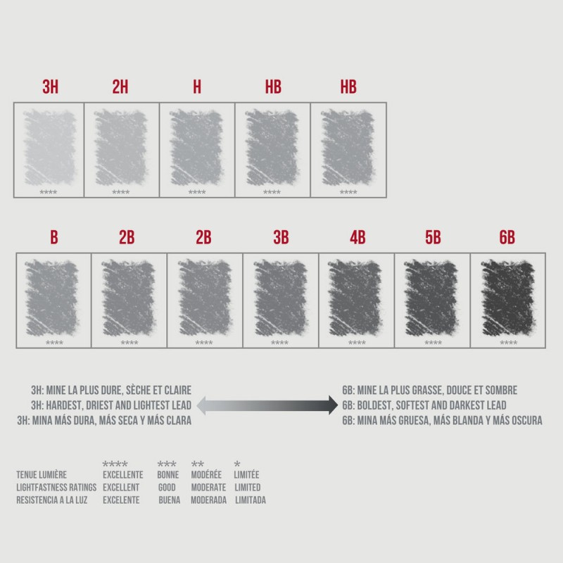 Questo set comprende 12 matite in grafite nelle seguenti gradazioni: