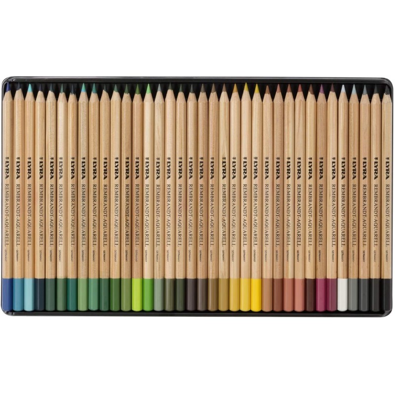 Fantastica confezione in metallo realizzata da Bruynzeel, composta da 36 matite acquerellabili di alta qualità con un nucleo robusto e spesso di 2,9 mm.