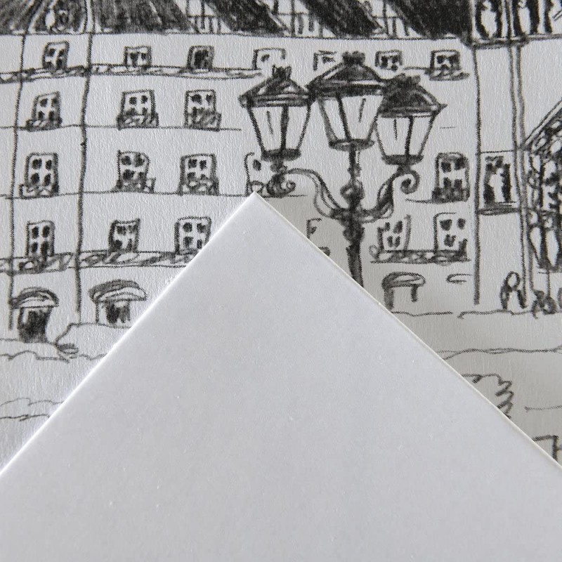 Questa carta bristol finissima, bianchissima e ultra-liscia è molto resistente. Supporta le correzioni ripetute con gomma o raschiatura.