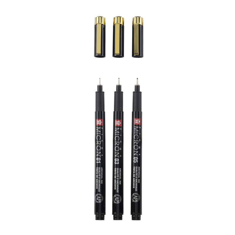 Set di 3 penne nere Pigma Micron. Le penne Pigma Micron sono fineliner impermeabili e permanenti che vengono utilizzati fedelmente da designer, scienziati, archivisti, artisti manga, fumettisti, illustratori e hobbisti.