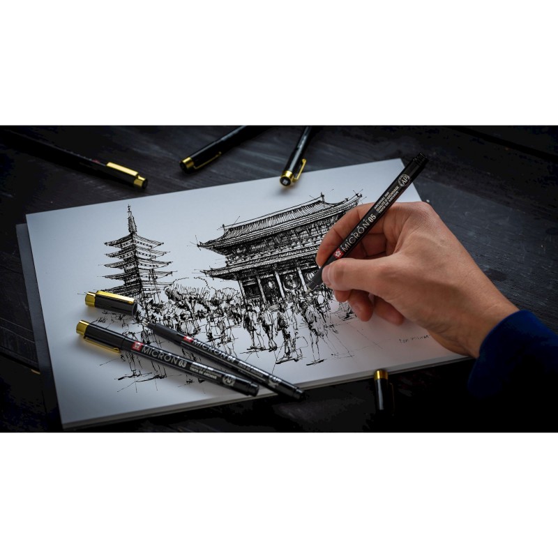 Set di 10 penne nere Pigma Micron. Le penne Pigma Micron sono fineliner impermeabili e permanenti che vengono utilizzati fedelmente da designer, scienziati, archivisti, artisti manga, fumettisti, illustratori e hobbisti.