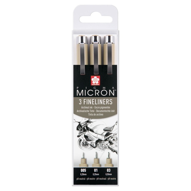 Set di 3 penne nere Pigma Micron. Le penne Pigma Micron sono fineliner impermeabili e permanenti che vengono utilizzati fedelmente da designer, scienziati, archivisti, artisti manga, fumettisti, illustratori e hobbisti.