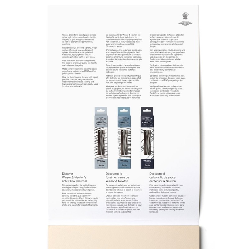 Contiene un’elevata percentuale di cotone e viene tinta in polpa, caratteristiche che le conferiscono non solo una texture adeguata, ma anche una forza e una durata che resistono alla prova del tempo. La sua superficie granulosa a collatura neutra assorbe perfettamente i pigmenti. Carta di qualità archivio, priva di acidi e di sbiancanti ottici che garantisce una stabilità e una resistenza al tempo ottimali. Realizzata impiegando energia idroelettrica al fine di limitare le emissioni di gas serra e a partire da una polpa certificata FSC al fine di proteggere le foreste. Ideale per schizzi e disegni a pastello, a grafite, a carboncino, a sanguigna o con altre tecniche che consentano di utilizzare ombreggiature e lumeggiature. Può essere ugualmente utilizzata anche per altre tecniche.