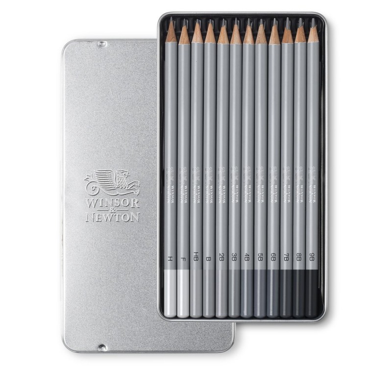 12 Matite in grafite (H, F, HB, B, 2B, 3B, 4B, 5B, 6B, 7B, 8B, 9B).