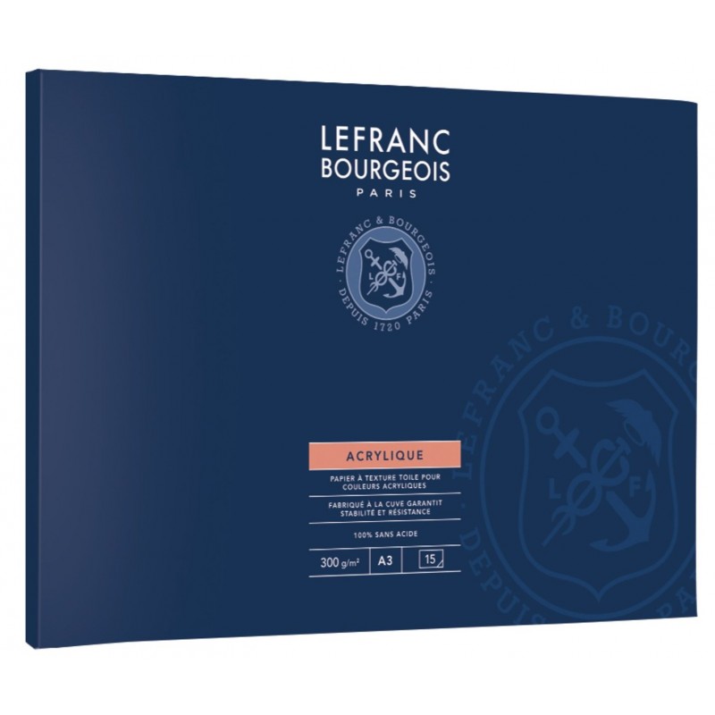 La gamma di carta Lefranc Bourgeois per colori acrilici è stata specificamente progettata per l'uso con i medium e i colori acrilici e i colori Flashe Lefranc Bourgeois . Realizzata a macchina in tondo per garantire stabilità e resistenza all'invecchiamento.