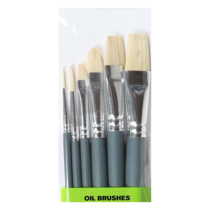 6 pennelli manico corto (tondi n°3, 6 - filbert n°3, 6 - piatti n°10, 14)