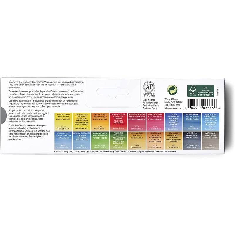 I pigmenti utilizzati sono i più pregiati e selezionati per la loro forza e dal tono delle tinte: questa caratteristica rende unici i colori ad acquerello Winsor&Newton.