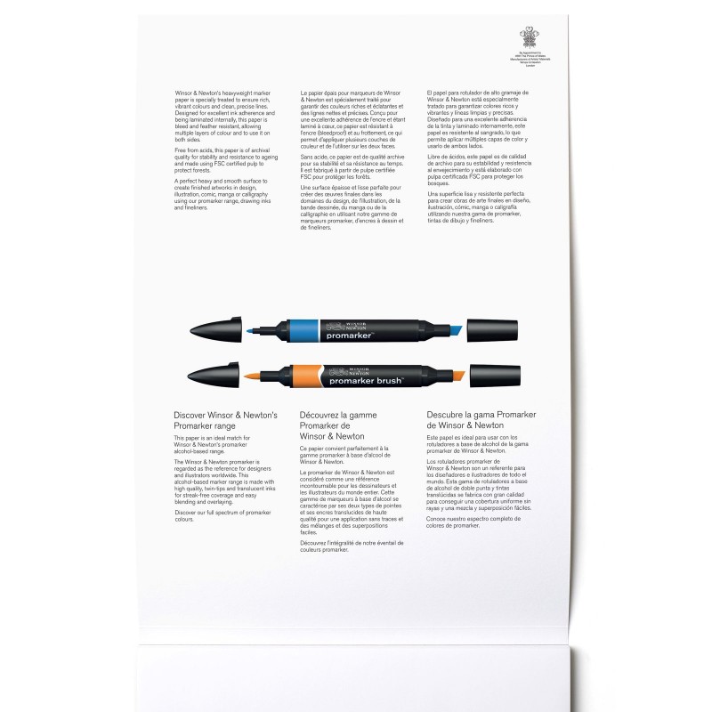 Questa carta è priva di cloro e di acido al fine di prevenire l’ingiallimento. Offre una superficie ottimale per tutti i tipi di marker a base d’alcol.