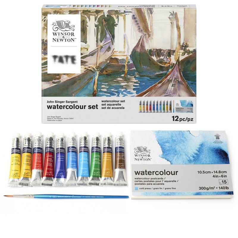 Questo set è incentrato sull’artista John Singer-Sargent che dipinse notoriamente i suoi studi di paesaggio en plein air. La sua esperienza come disegnatore lo ha reso ricercato come ritrattista della società e gli ha offerto la possibilità di viaggiare molto. Durante i suoi viaggi, ha fatto ampi studi ad acquerello, registrando i luoghi in cui è andato e le persone che ha visto in piccole opere gestuali come l'opera presente in questo set. Esplora alcune delle sue tecniche e cattura la vivacità della vita all'aria aperta con questo set di acquerelli.