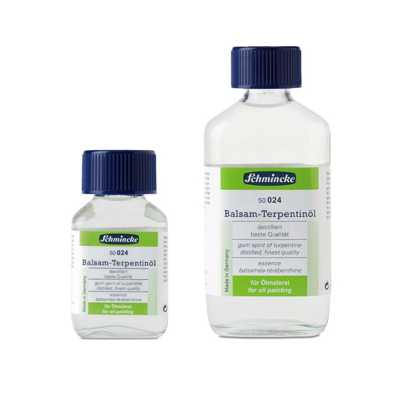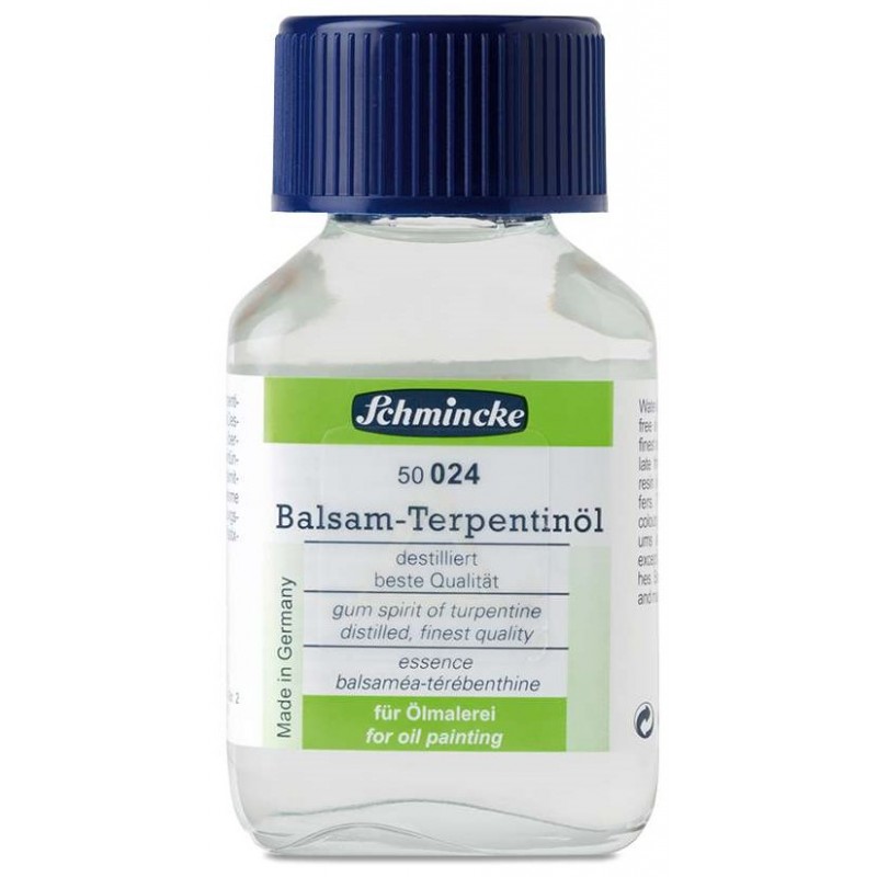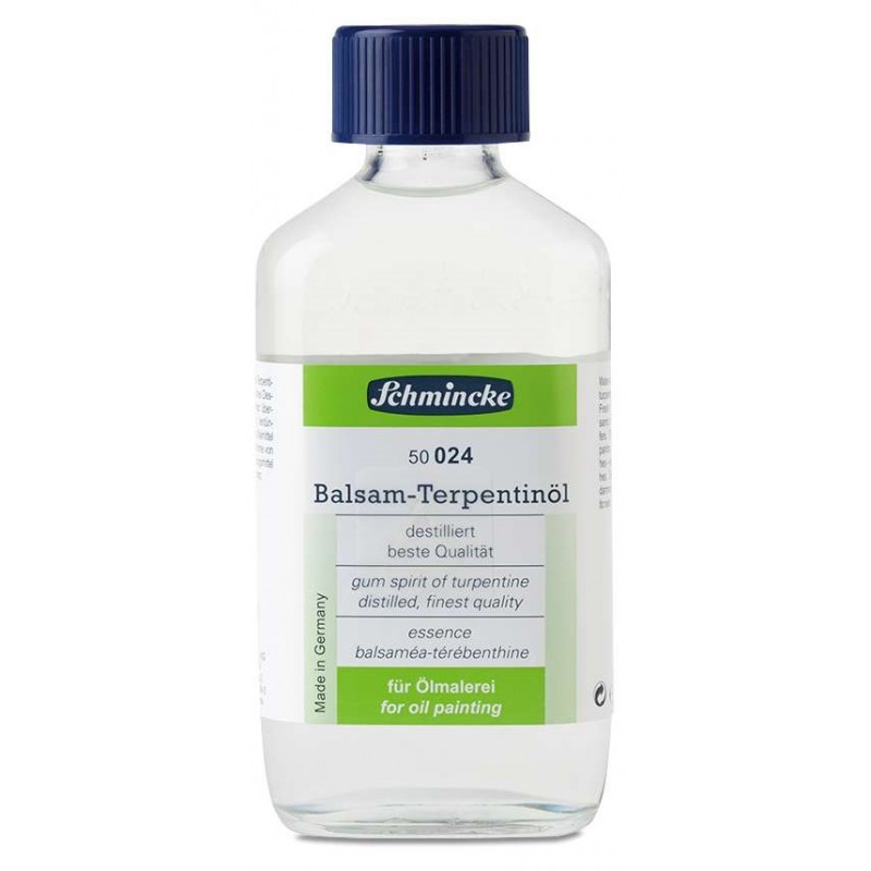 Balsamo di trementina Schmincke appositamente purificato, distillato ripetutamente (rettificato); viene utilizzato per diluire colori e ausiliari per la pittura ad olio, oltre che ad essere un prodotto valido per la pulizia dei pennelli e degli strumenti utilizzati durante la sessione pittura.