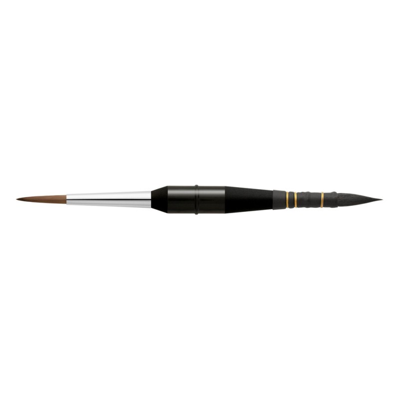 Da un lato abbiamo una punta tonda in filato sintetico Hidro, dall’altro lato abbiamo una punta tonda in martora Kolinsky sintetica MKS.