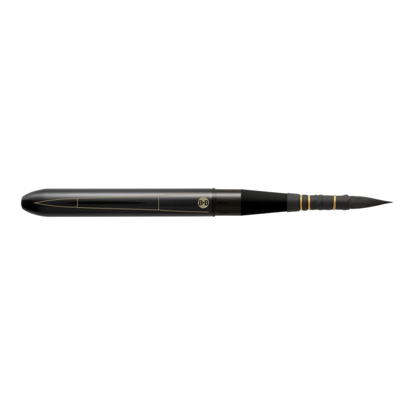 Il pennello ha un’estremità sottile e precisa ed il corpo si allarga in un diametro generoso; la punta asseconda la pressione della pennellata al variare del tratto.