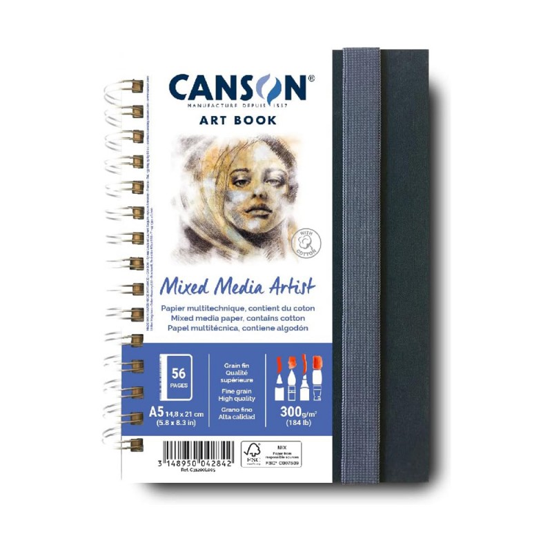 Taccuino da disegno Mixed Media Artist di Canson, la carta perfetta per tecniche miste! La sua superficie è ideale per tutte le tecniche in quanto è resistente sia all'acquarello che all'acrilico, ma funziona perfettamente anche con inchiostri e pennarelli.