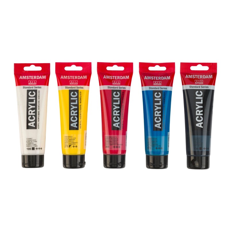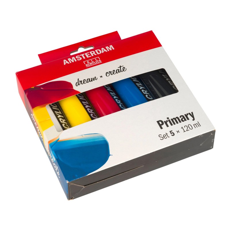 Questo set contiene i colori primari della linea Amsterdam nel formato da 120ml nei seguenti colori: