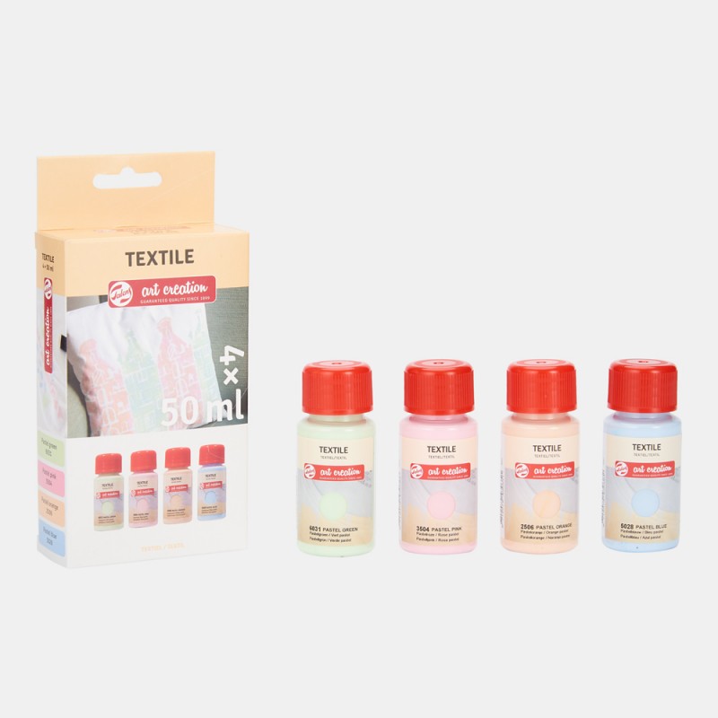 Textile set Pastello di Royal Talens! Colori a base di acqua realizzati per tessuti di colore chiaro, contenenti almeno il 50% di cotone.
