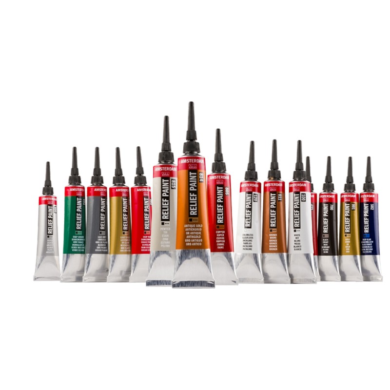 Pasta per contorni Amsterdam di Royal Talens, progettate per creare linee in rilievo chiaramente visibilidipingere decorazioni fini e stencil su vetroporcellana e altre superfici non porose.