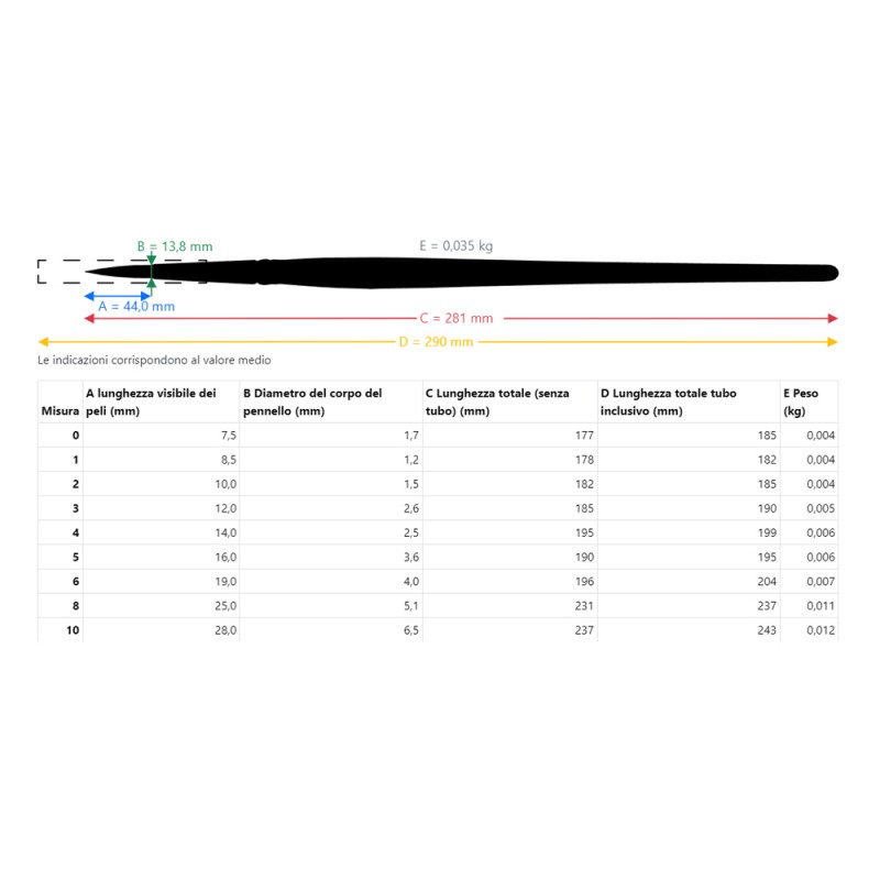 La fibra sintetica è soffice ed elastica; grazie alla sua particolare punta, questo pennello possiede un'eccezionale capacità di assorbimento.