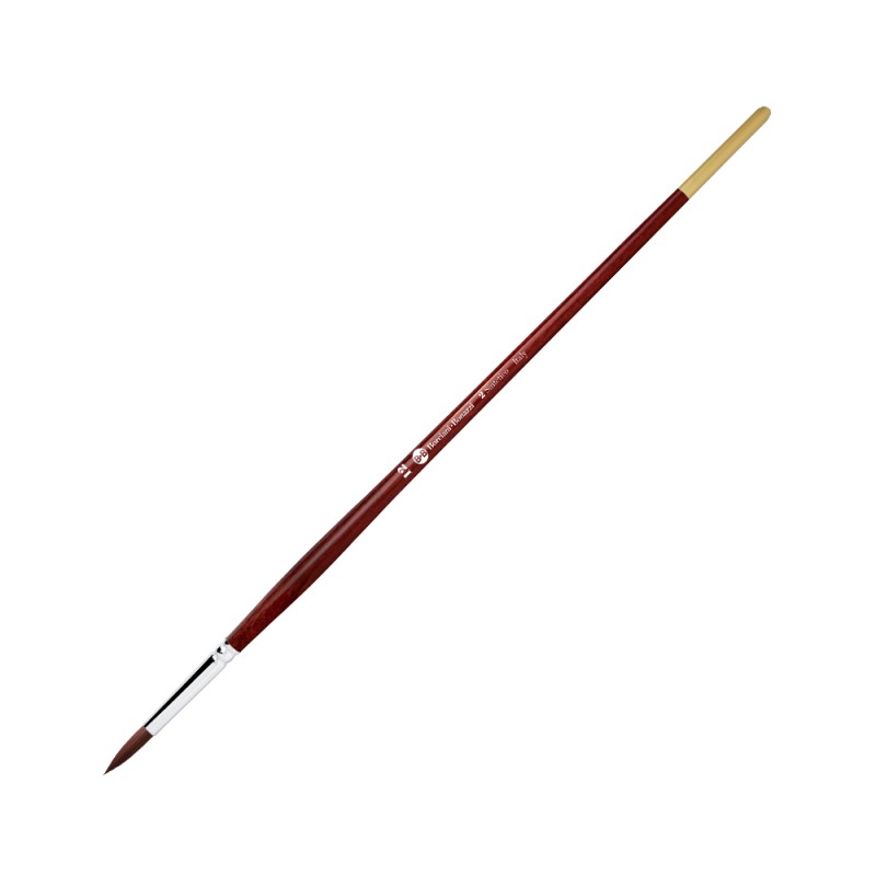 La punta tonda è perfetta per dettagli e particolari dove il colore sia applicato lasciando una traccia definita e piena. In pressione crea una traccia a goccia corta. Il manico lungo sagomato aumenta la distanza tra mano e gesto pittorico e si rende indispensabile nelle tecniche dove sia necessaria una maggiore visione d' insieme.