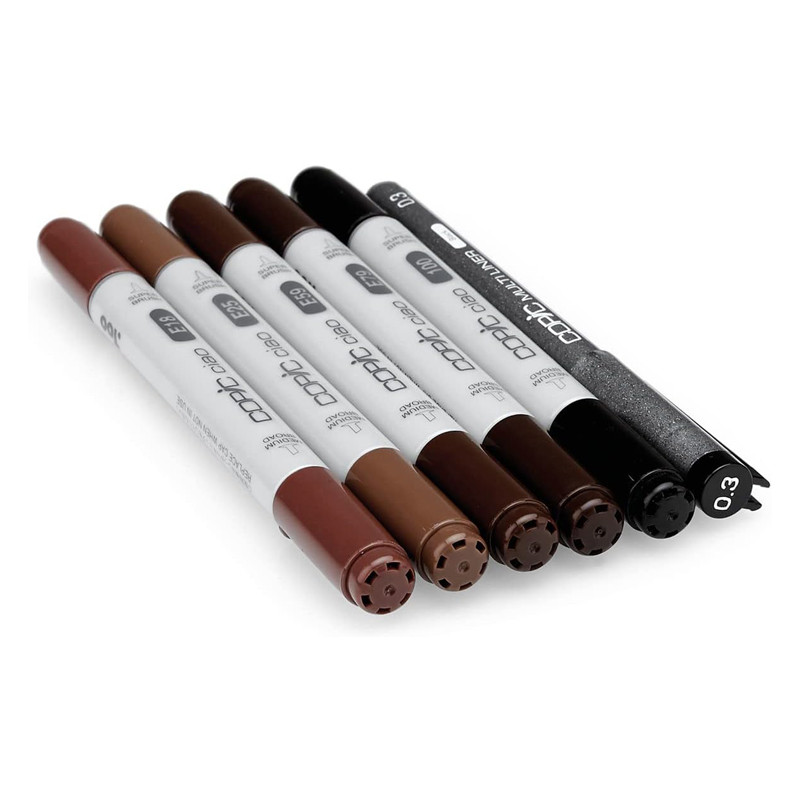 Pennarelli Copic Ciao, Set 5 Toni Pelle + 1 Penna Nera Multiliner 0,3