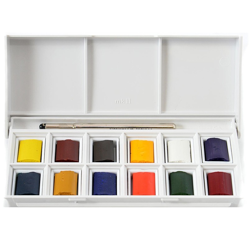 Questi grandi colori per acquerello sono riuniti qui in un box estremamente compatto – difficile infatti trovarne di più facilmente trasportabili: parliamo di un set effettivamente tascabile! Racchiusa in questa confezione c'è dunque una selezione dei colori ad acquerello più usati.