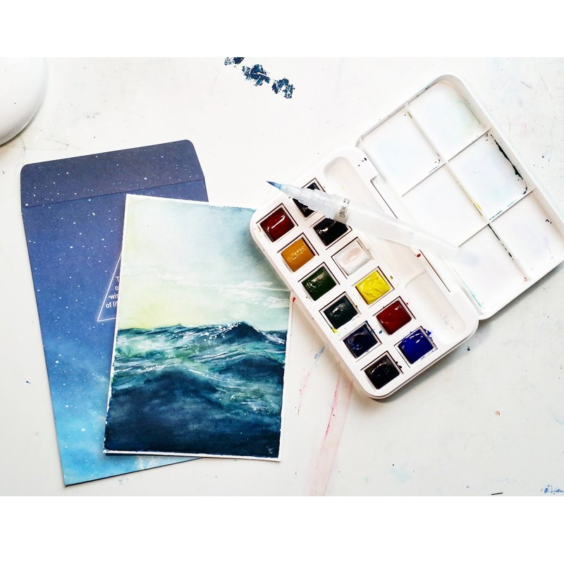 Questi grandi colori per acquerello sono riuniti qui in un box estremamente compatto – difficile infatti trovarne di più facilmente trasportabili: parliamo di un set effettivamente tascabile! Racchiusa in questa confezione c'è dunque una selezione dei colori ad acquerello più usati.