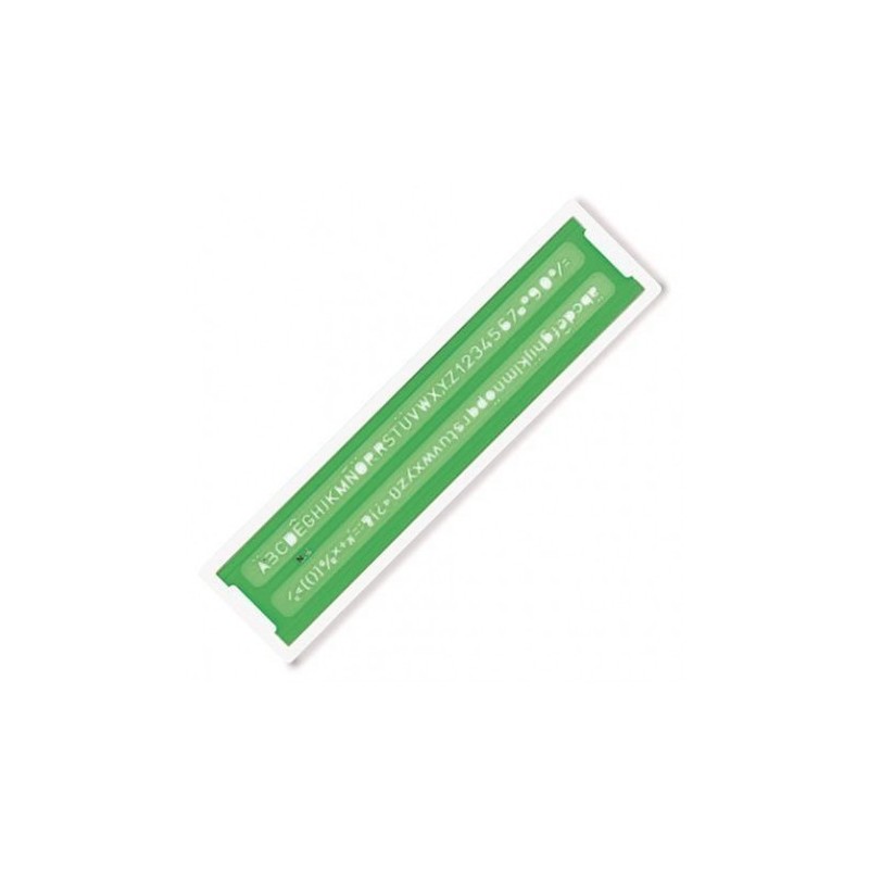 +390823846958Normografo norme Uni in K-resin di colore verde. Adatto per scrivere con matita o china.