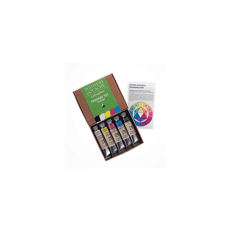 Il set di colori primari Gouache Extra Fine è composto da 5 tubi nel formato da 20ml, nelle seguenti tonalità: