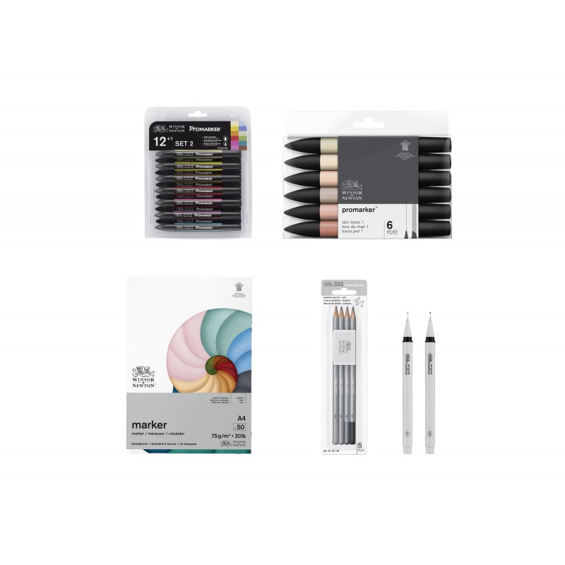 Questo Set è indicato a tutti coloro che si avvicinano al disegno fumettistico; si tratta quindi di un assortimento base di strumenti professionali di alta qualità, prodotto da Winsor&Newton e Sakura , indispensabile per il disegno Manga.