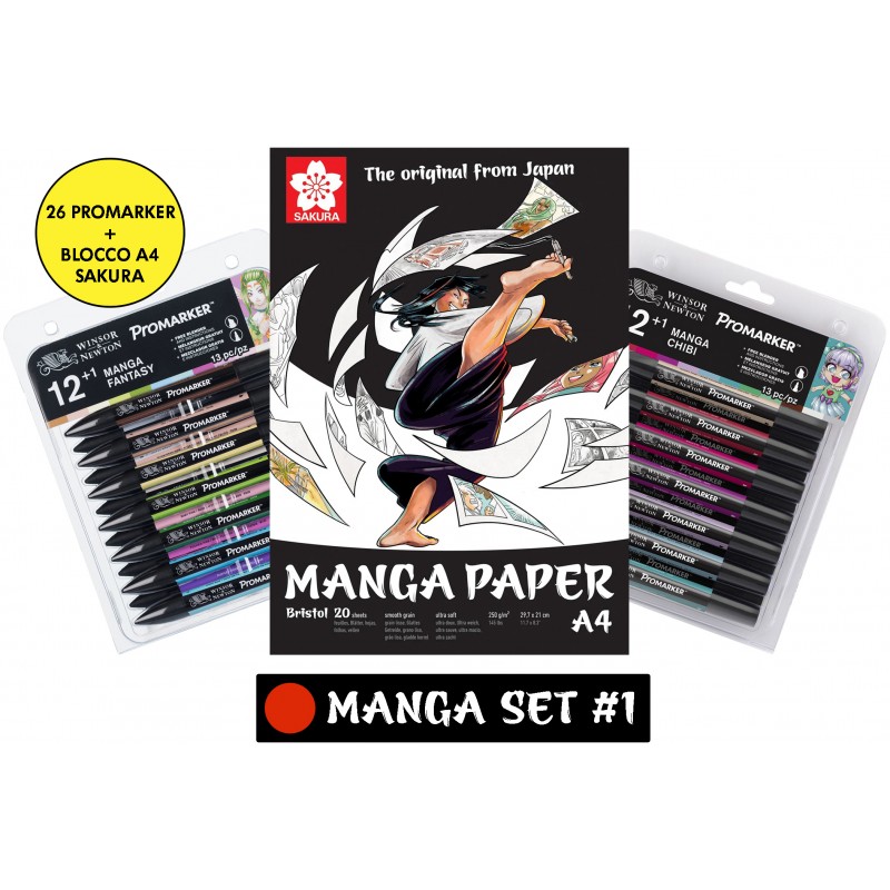 Questo Set è indicato a tutti coloro che si avvicinano al disegno fumettistico; si tratta quindi di un assortimento base di strumenti professionali di alta qualità, prodotto da Winsor&Newton e Sakura , indispensabile per il disegno Manga.