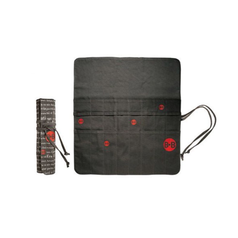 +390823846958Fantastico rotolo portapennelli di Borciani e Bonazzi realizzato in cotone con 8 comode tasche e chiusura con corda. Dimensioni aperto: 32,5x37 cm