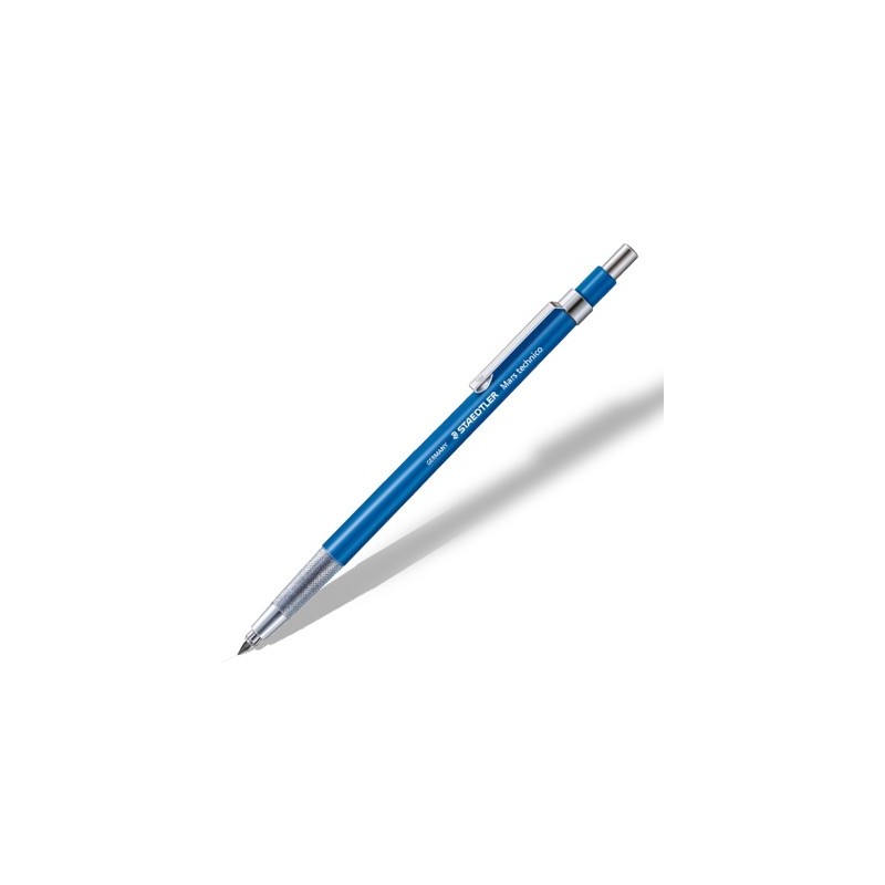 Portamine a pinza per disegno, schizzi e scrittura. Adatto per mine da 2 mm. Affilamine integrato nel pulsantino. Clip, pulsante e impugnatura zigrinata antiscivolo in metallo.